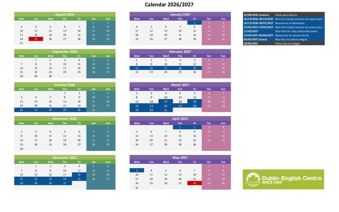 Calendario escolar Irlanda 2026/2027