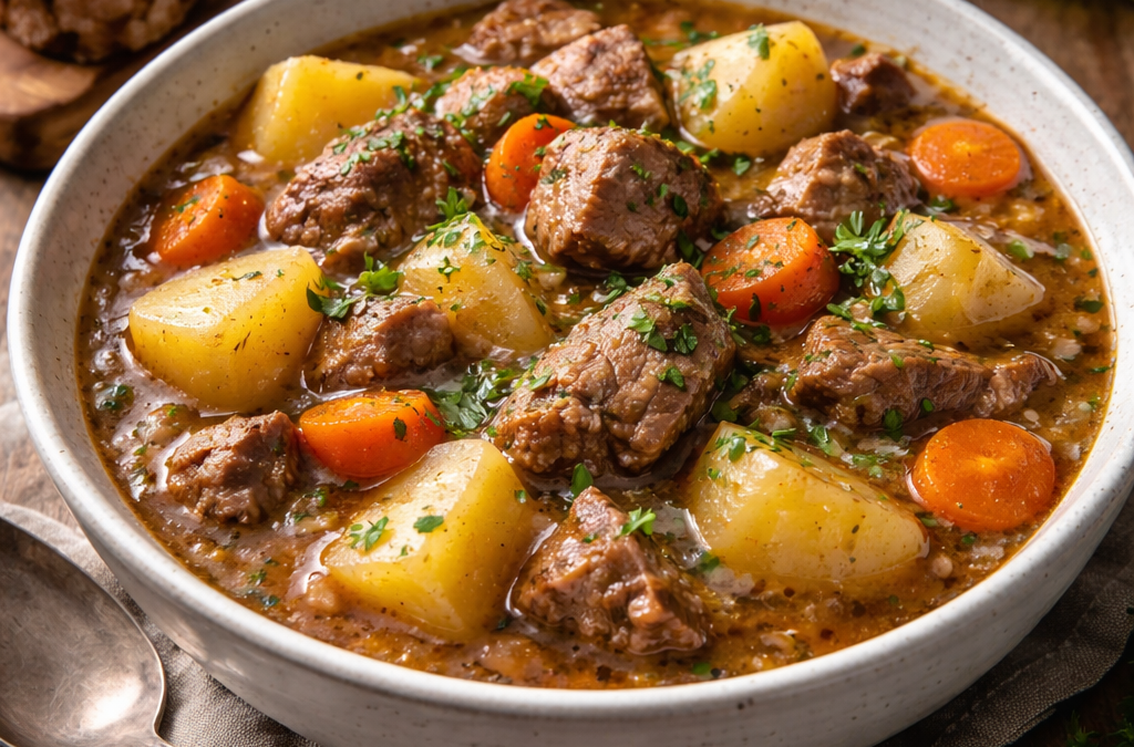 Típico plato de guisado irlandés o Irish Stew
